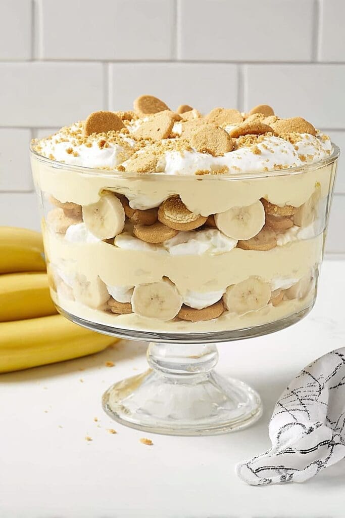 Runny pudding usually results from insufficient whisking time or using warm milk – always whisk the full 2 minutes with cold milk. Deflated texture occurs when whipped topping is overmixed; fold just until combined. Soggy wafers happen when the pudding is too warm when assembled – ensure everything is properly chilled. Brown bananas can be prevented by adding them just before serving or using a light lemon juice treatment.
