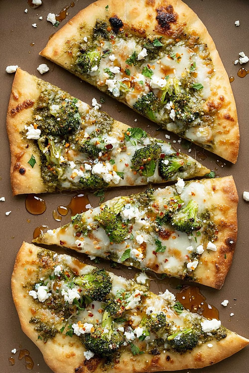 Cheesy Broccoli Pesto Flatbread Pizza