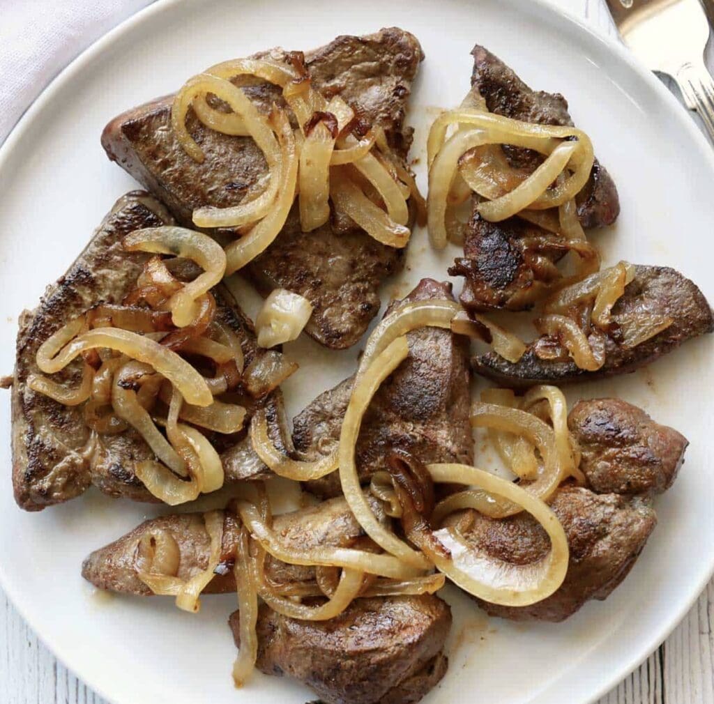 Put the cooked liver on a plate and top it with the warm onions. Your liver and onions are ready to eat!