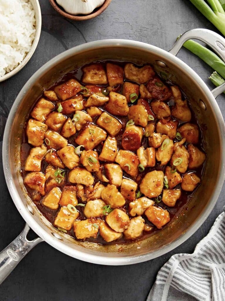 For the best honey garlic chicken, make sure to cut your chicken into even-sized pieces. This helps them cook at the same rate. Don’t overcrowd the pan when cooking – it’s better to do it in batches.