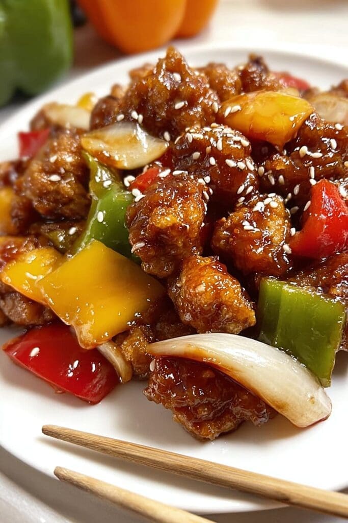 Soggy coating usually means oil temperature was too low or pieces were overcrowded. Tough pork indicates insufficient marinating time – the baking soda needs at least 15 minutes to work its magic. Sauce too thin means it didn’t reduce enough; simmer an extra 1-2 minutes until glossy. Vegetables overcooked happens when they’re added too early; they should retain some crunch for textural contrast.