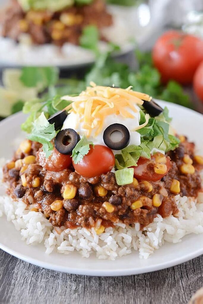Refrigerate leftovers for up to 4 days in airtight containers, storing the meat mixture separately from rice and toppings. Reheat gently in the microwave or stovetop with a splash of broth to restore consistency. Freezer-friendly for up to 3 months – the meat mixture freezes beautifully, though the texture of corn may change slightly.