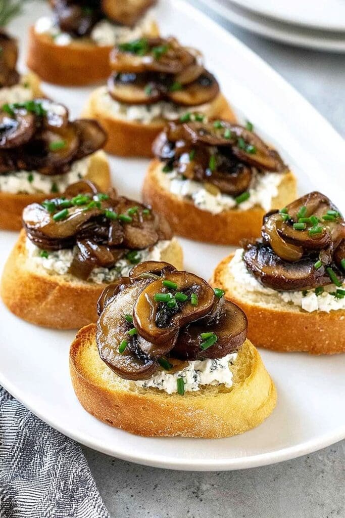 Picture this: golden, crispy baguette slices topped with the most incredible caramelized onions and earthy mushrooms, all crowned with creamy goat cheese that practically melts in your mouth.