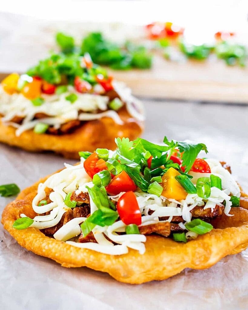 Navajo tacos take everything you love about traditional tacos and pile it high on golden, crispy fry bread that’s basically a fluffy cloud of deliciousness.