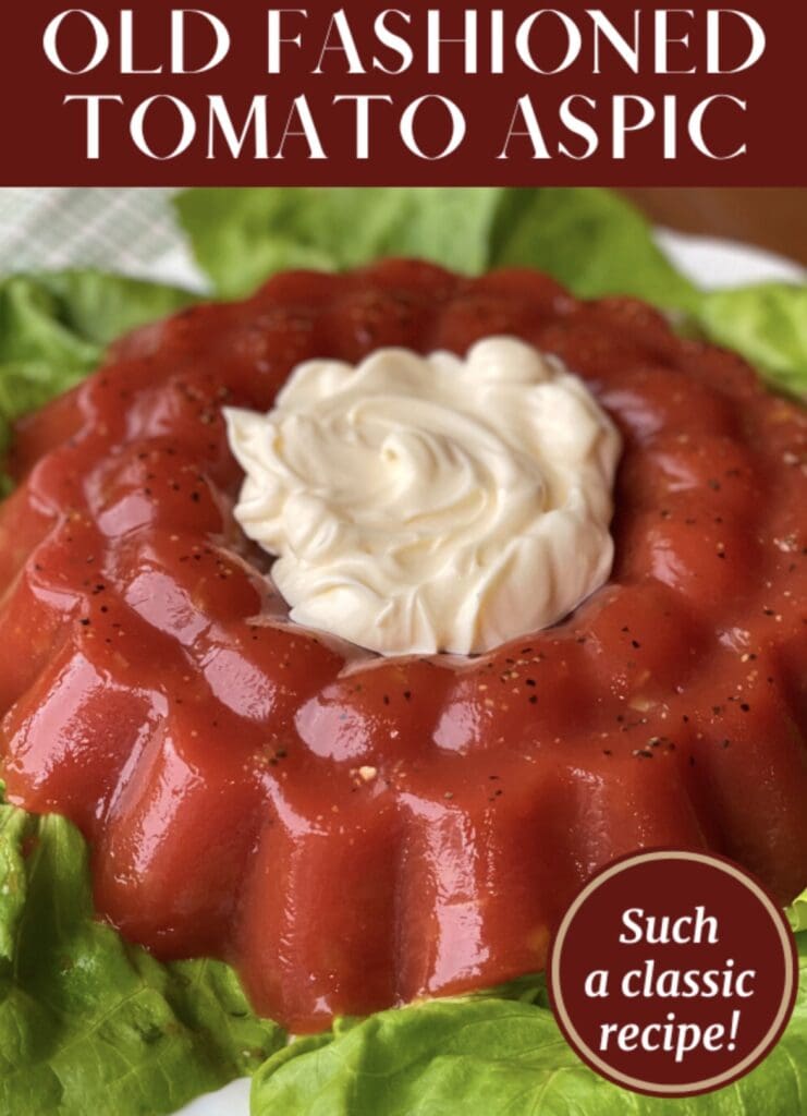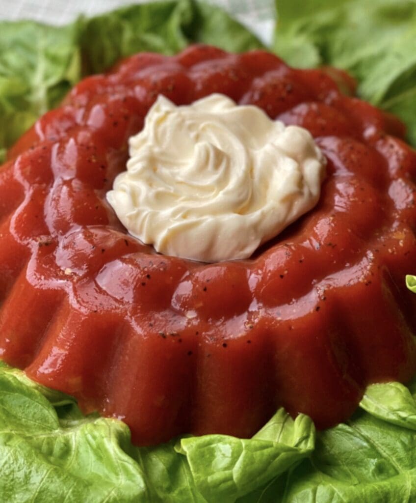 Top your tomato aspic with a dollop of Duke’s mayonnaise for extra flavor. Enjoy your retro side dish!