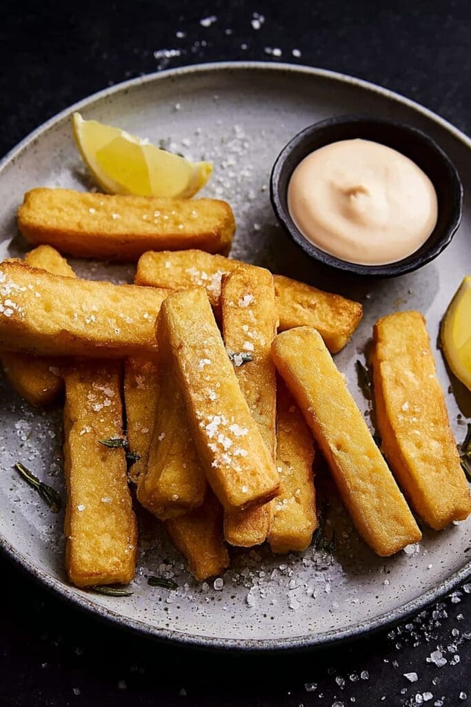 - 9 Transfer fried panisse to a paper towel-lined plate to drain excess oil. Immediately sprinkle with kosher salt, flaky salt, or freshly ground black pepper while still hot. Serve immediately with lemon wedges for squeezing, or your favorite dipping sauce like Sriracha mayo or harissa mayo.