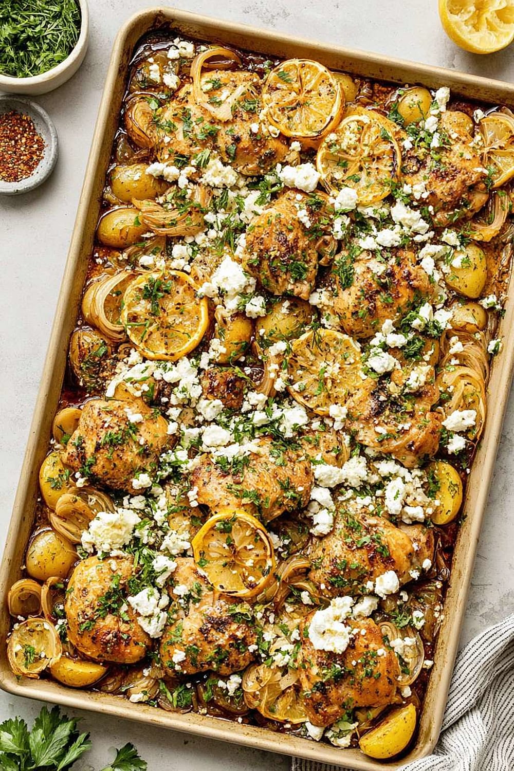 By the time everything emerges from the oven, you’ve got tender potatoes with crispy edges, juicy chicken with golden skin, and those gorgeous caramelized lemon slices that taste like sunshine.