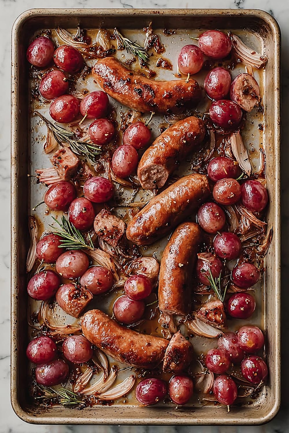 Picture this: juicy Italian sausages getting all bronzed and beautiful while nestled among sweet red grapes that burst into jammy perfection in the oven.