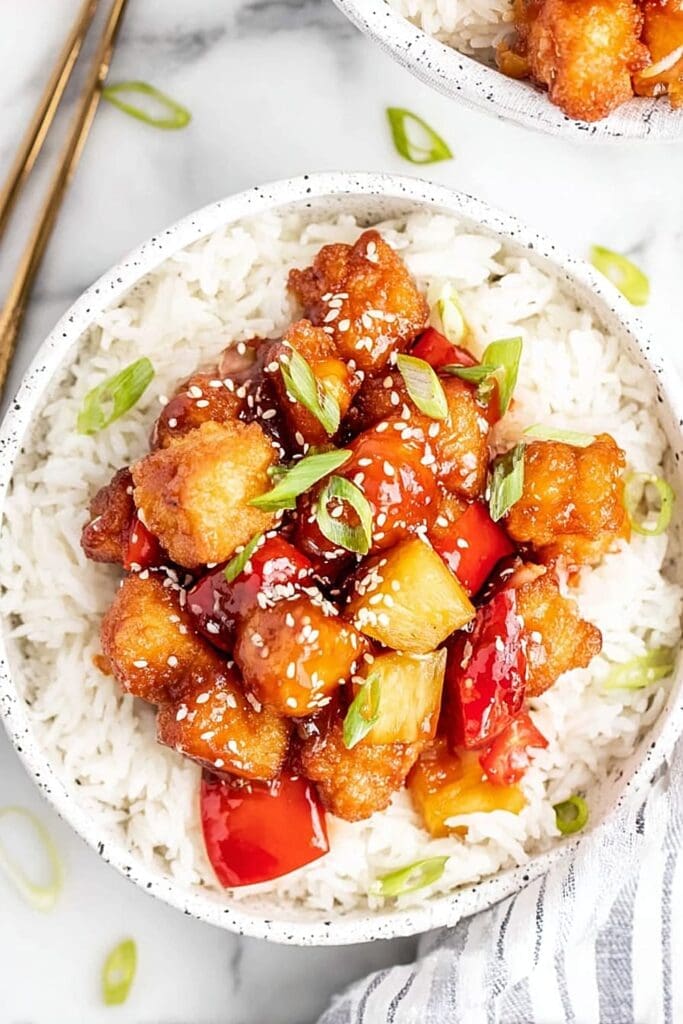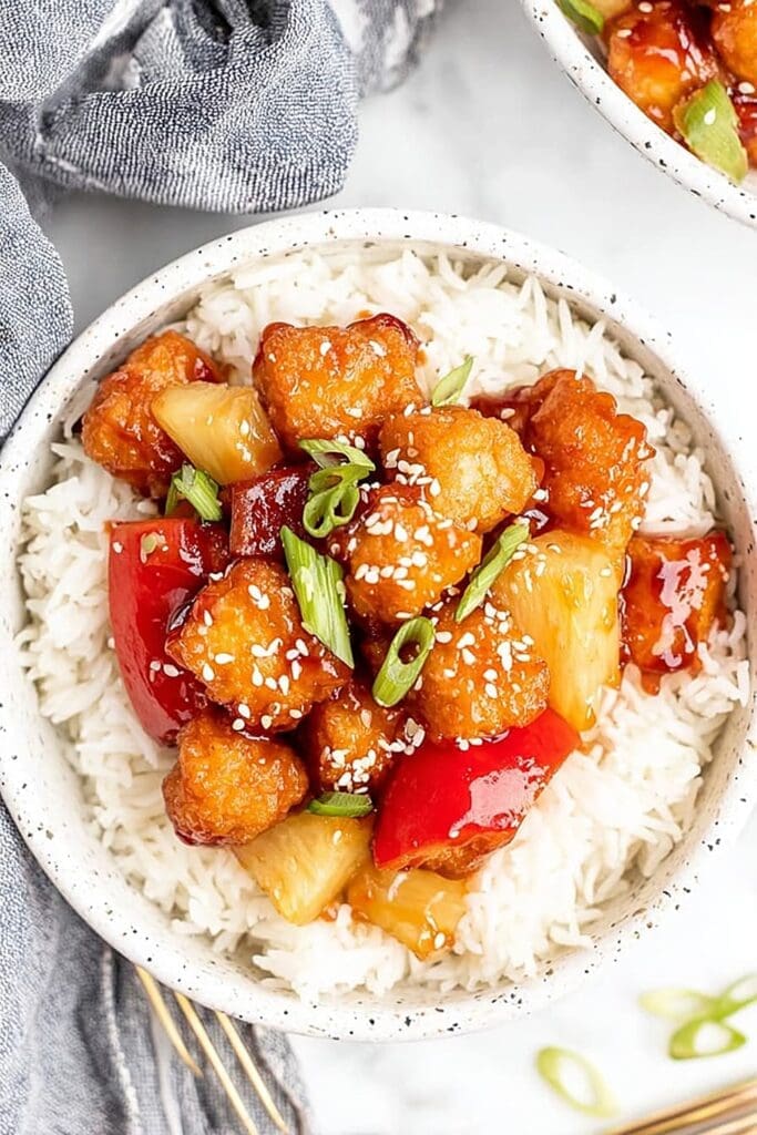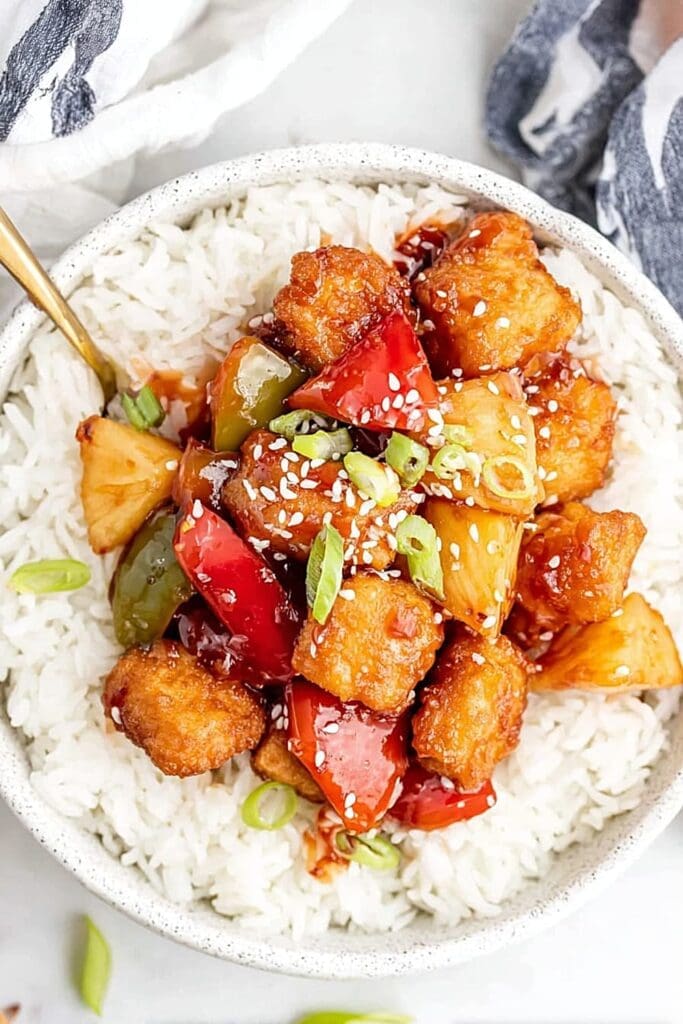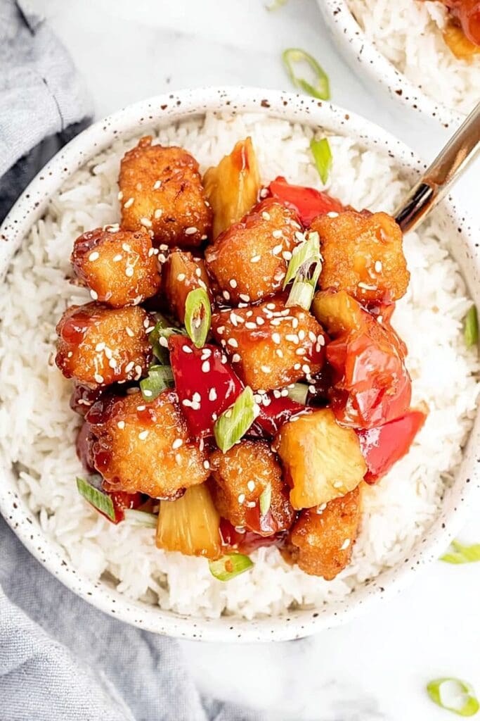 That sauce though – it’s the perfect balance of sweet pineapple, tangy vinegar, and savory soy sauce that’ll have you licking the spoon clean.