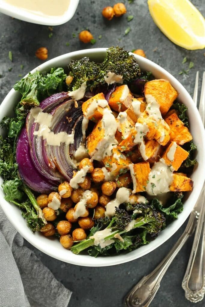 The combination of caramelized sweet potatoes, perfectly spiced chickpeas, and vibrant greens creates a symphony of textures that’ll make your taste buds do a happy dance.