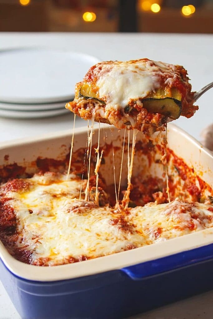 - Include protein by layering lean ground turkey between zucchini layers (helps stabilize blood sugar)